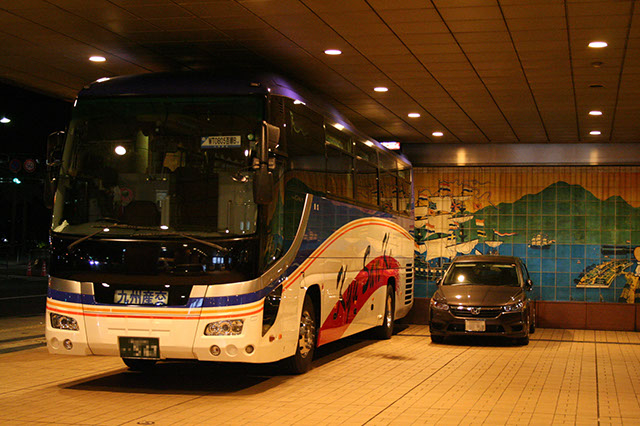 歩いてホテルの駐車場に着きました。なんかオモシロイので写真に撮りました。観光バスとウチのストリームと並んでいると親子みたい。明日は長崎市内観光と島原城方面に行きます。お休みなさい(^^)