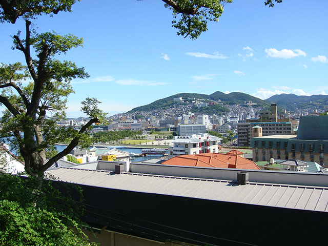 建物の中から見た長崎の町並み。