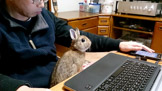 テレビを見ている人間とパソコンをガン見しているウサギ。スマホをイジる人間とイジりたそうなウサギ。