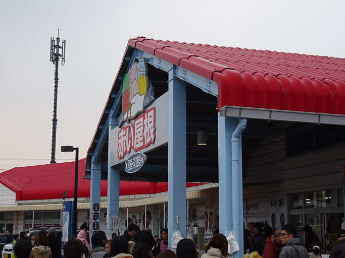 「たこせんべいの里」を出たところにある「赤い屋根」。産直・淡路、って書いてあります。