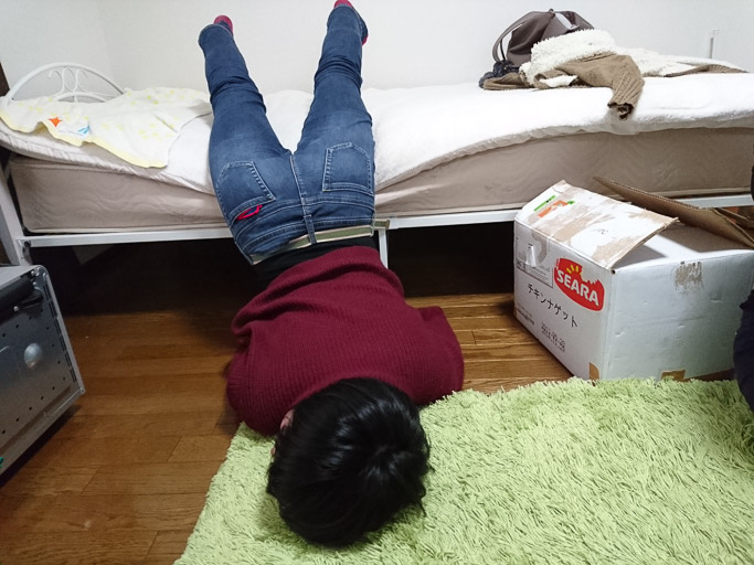 部屋に帰って、2日間の引越疲れで溶けてしまっている次女。