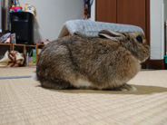 最近の小次郎さんです。お元気です。タタミの6畳が彼の住む世界。そこからあまり出ようとしません。別に結界を張っているわけでもないんですが、彼なりに自主規制しているみたい。先代のウサギさんたちは、階段を上ってきてパソコンの部屋のケーブルを食いちぎったり^^;とかしてたんですけどねー。