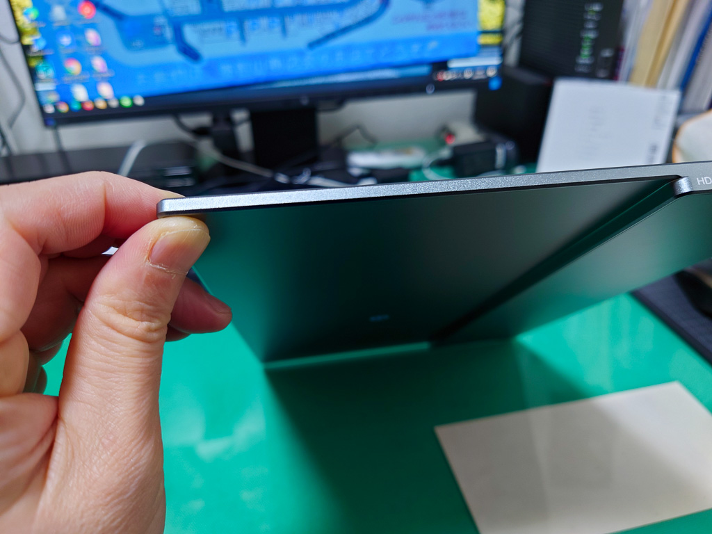 最薄部は4mm。最厚部で9mm。端子類が、USB-CとHDMI(Mini)になっている効果でしょうかね。持ち運ばないなら、ここまで軽くて薄い必要もないけど^^;