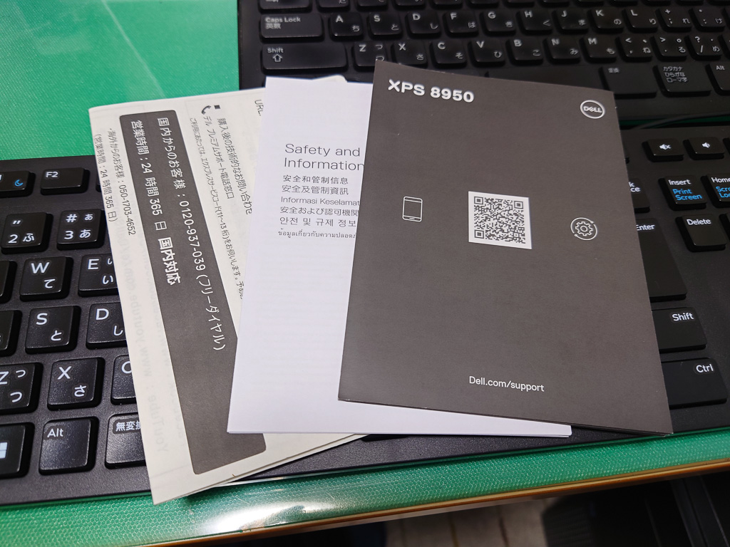 同梱されてきた冊子。これだけ。もっと知りたい人は、QRコードからDELLのサイトに飛んでね、ってことらしい。