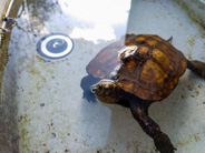 冬が来る前に、カメの生紀(いき)ちゃんと戯れる。(本人の気持ちは分からないけど。)どういうつもりでこっちをじーっと見ているのか。逃げないから嫌ではないみたい(と思いたい)。