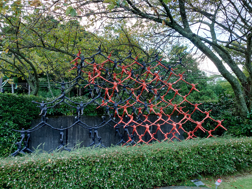 後藤良二さんの「交叉する空間構造」。写真を撮りながら、出口にみんな向かっています。