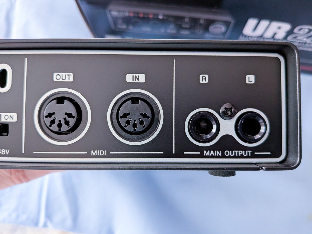 MAIN OUTPUT はTRSフォンのLR2本出し。3pinのXLRが良かったけど、持ち運び優先だと仕方がない。変換ケーブルをケースに入れて一緒に持ち歩くことになる。そのためのケーブルも一緒に買いました。(仕事場には備品で置いてあるから大抵要らない。)