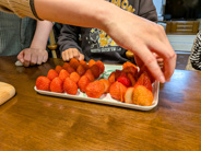 3人娘たち+孫が帰ってきたので・・・餃子パーティー&3日遅れのクリスマスケーキ。 三宅酒造でゲットしてきた「とととごり」と「QAラボ かるあまVer.3」を開けましたよ。娘たち曰く「かるあま」が今までのベストだったみたいです。「Ver.3」があるってことは1と2もあったんですね。「ラボ」とは、いろいろ改良して違うバージョンを出す意味があるらしいです。知らなかったー。 ケーキは長女作で、3種類のイチゴを贅沢に使った飾り付けはみんなでしました。